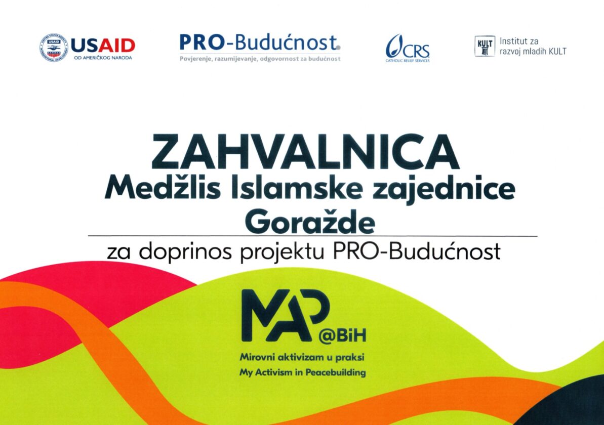 Medžlis Islamske zajednice Goražde je u PRO-Budućnost projektu učestvovao sa tri projekta kao nosilac aktivnosti, u jednom projektu kao dio projektnog tima, te u nekoliko projekata kao učesnik aktivnosti. Kao nosilac aktivnosti male grantove PRO-Budućnost projekta Medžlis Islamske zajednice Goražde dobio je za projekte ”Zajedno ka budućnosti” (2016.), ”Vjera i zaštita okoliša” (2017.) ”Govor mržnje – zloupotreba religije” (2019.), a bio je dio projektnog tima projekta ”Religija i zaštita životne sredine” (2017.) čiji je nosilac bila Srpska pravoslavna crkvena opština Goražde.